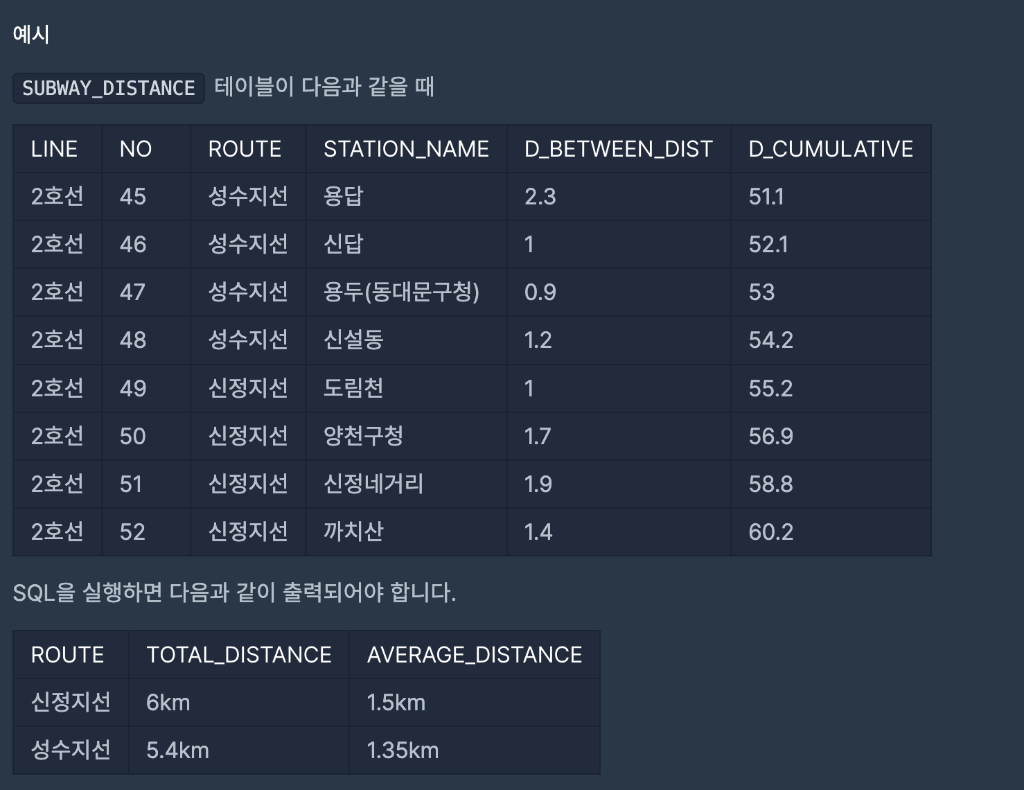 -- 총 누계거리는 테이블 내 존재하는 역들의 역 사이 거리의 총 합