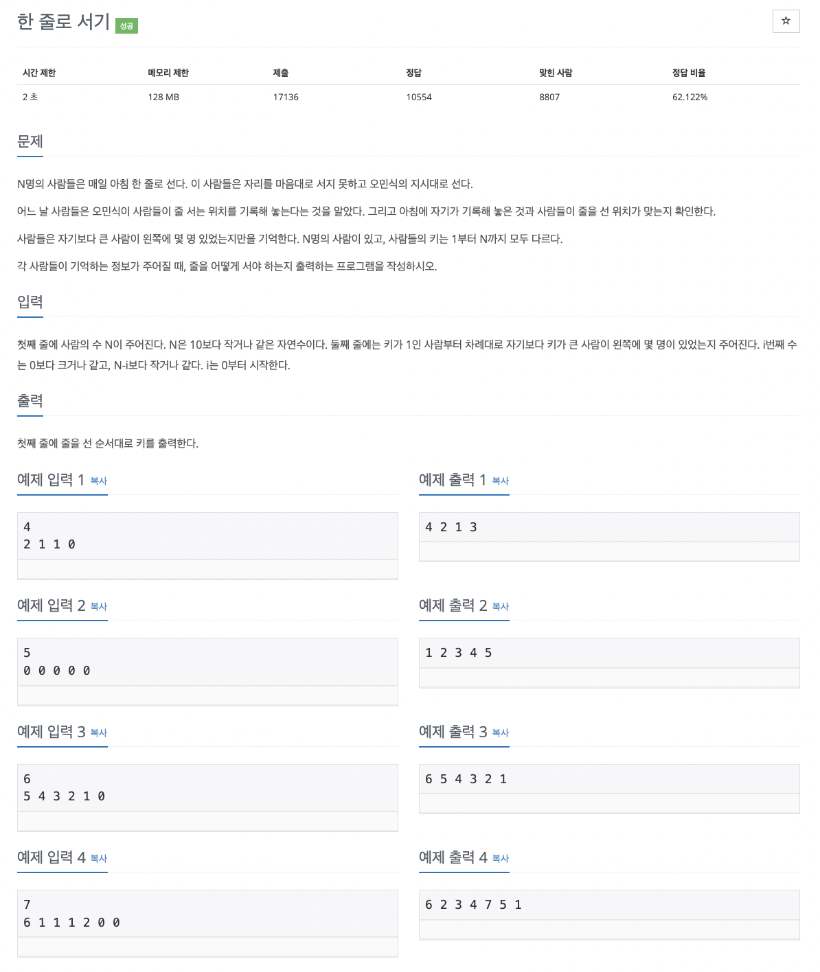 1. 큰 키서부터 주어진 위치만큼 앞에 남겨두고 위치시킨다.