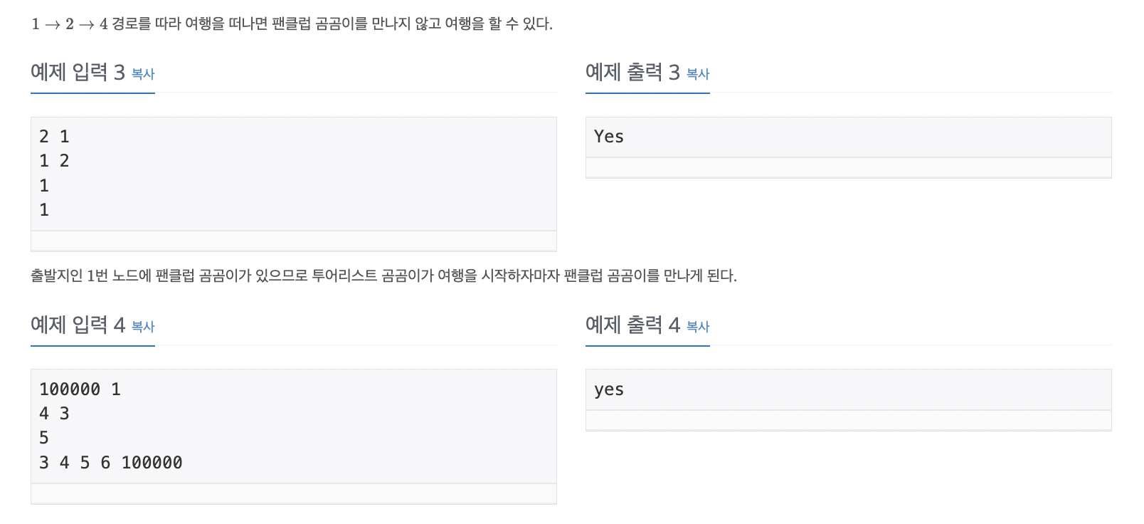 예제 2번을 해석해보니 '여행이 끝났다' 라는 말이 해당 노드에서 이동할 수 있는 노드가 없는 경우 라는 것을 깨달았다.