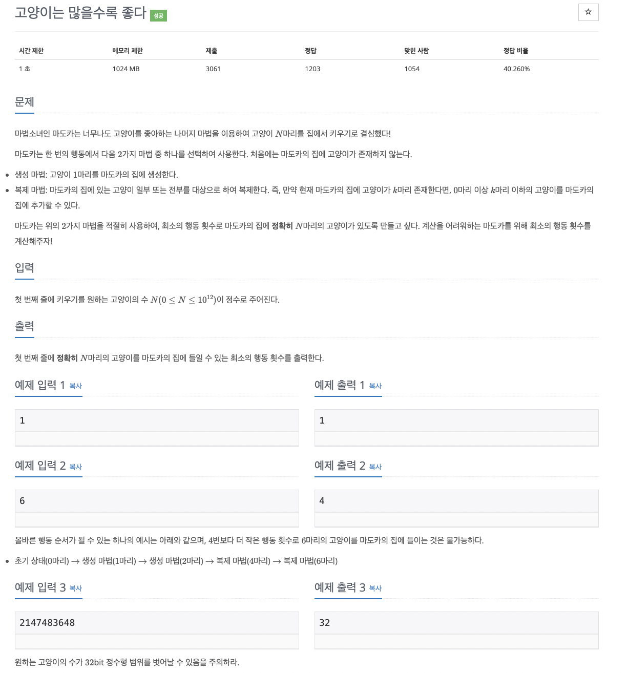 public class Day13_BOJ_27961_고양이는많을수록좋다 {