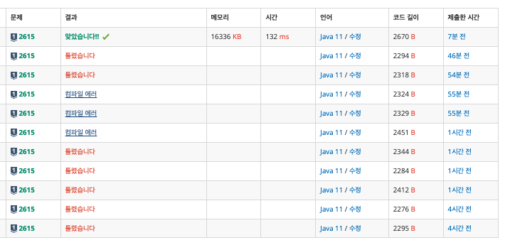 이렇게해서 통과하긴 했지만,, 너무 주먹구구식으로 푼 거 같아서.. 이 문제는 그냥 완탐으로 푸는 게 훨 나았을 거 같다는 생각이 든다 ㅠㅠ