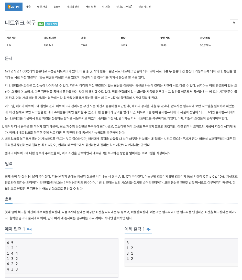 - 처음에 우선순위 큐에 방문할 노드를 넣고 방문처리를 해서,, 더 짧은 거리를 가지는 회선 탐색을 못함,,