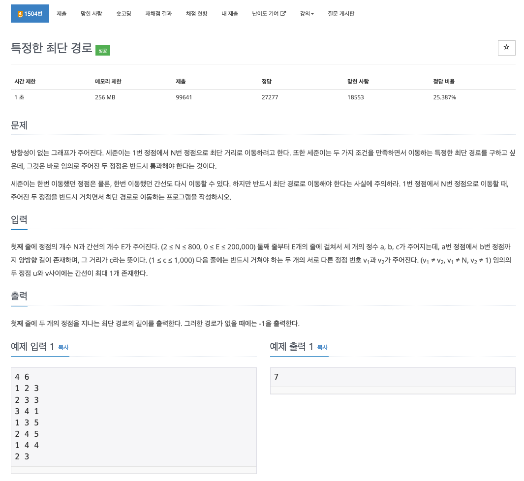 1. v1, v2 지나는 지 확인해서 마지막 노드에 저장하려 했으나, 무조건 최단 경로의 값을 저장해 이동하려는 문제가 발생했다. </br>