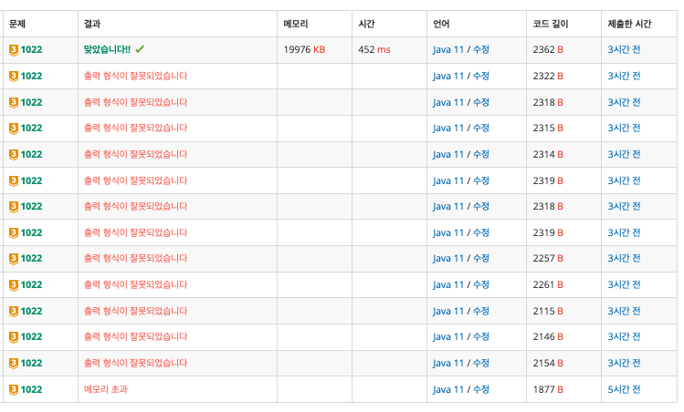 1. 출력 형식이 안맞아서 제일 골치 아팠다!!!